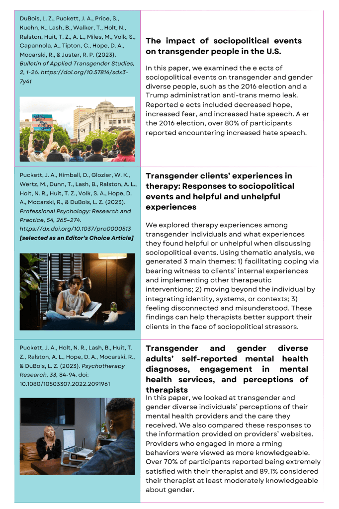 We have completed all data collection in this study and are continuing to analyze the data. We will be posting information here related to the findings as they become available. Below you’ll be able to find infographics, videos, presentations, and papers based on the study findings.